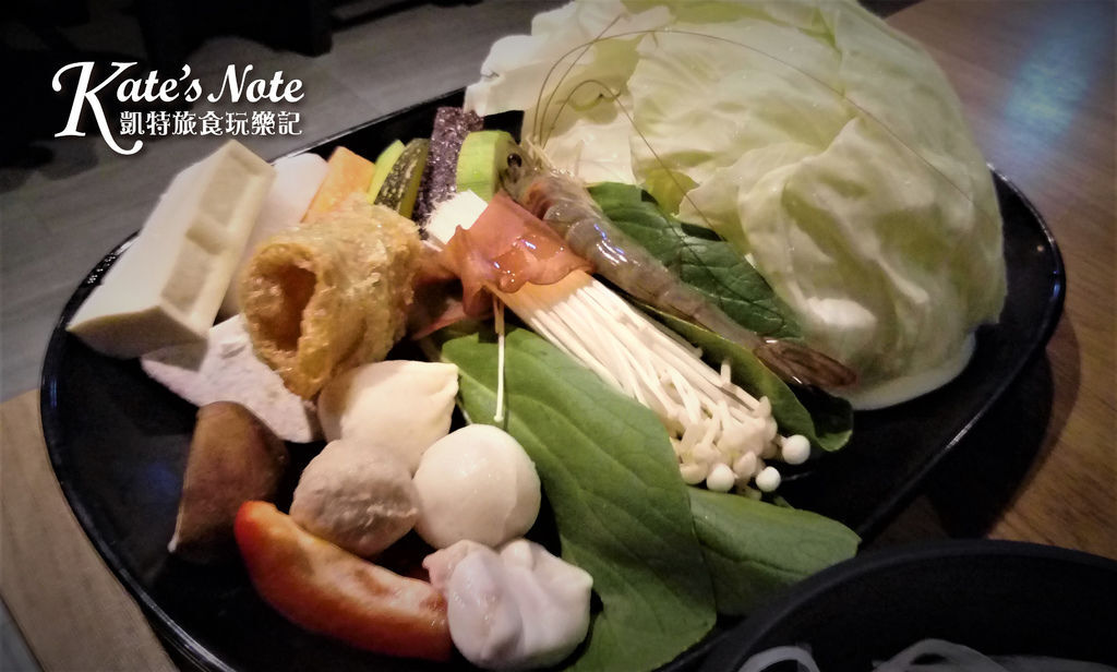 德立莊店的蔬菜盤與昆明店有些許不同,不過一樣都有各式蔬菜、菇類、火鍋料...,還有一隻蝦子。