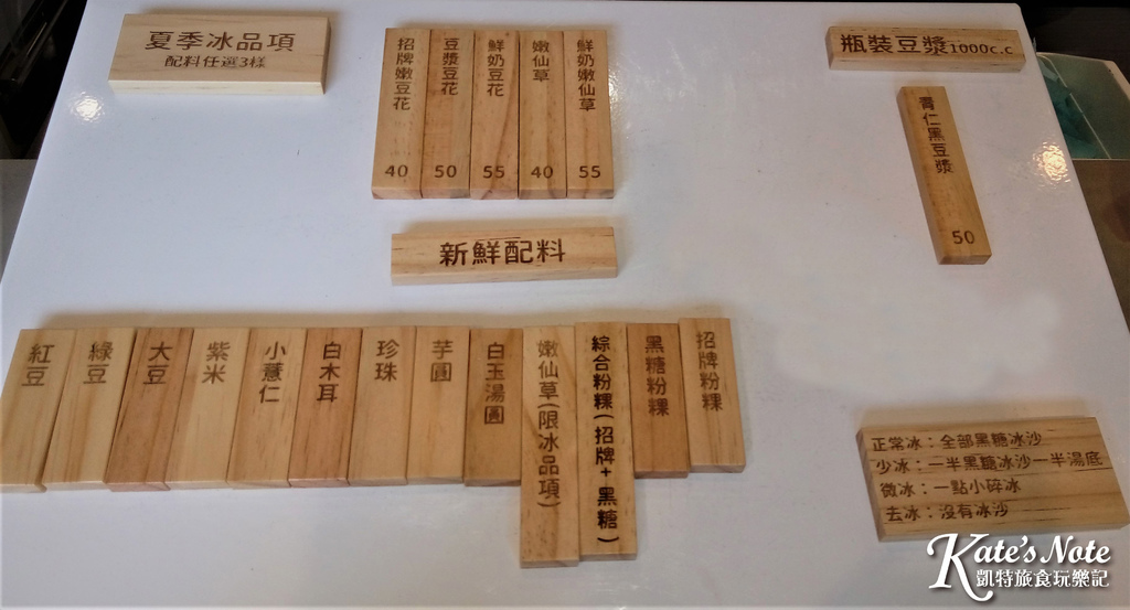 仙草和豆花都是40元起,可以選擇3種配料,冰量也可以調整,而且單人點一碗,豆花、仙草、黑糖冰沙還可以免費續加,如果共食想續加就需要加價了,詳細還是請教店內人員。