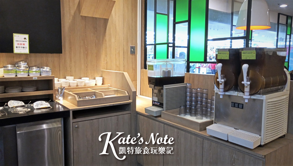 除了檸檬冬瓜冰沙和無糖黑豆茶可以自取以外,還有各式沾醬和餐具也是自取的。